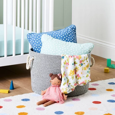 Keep their space organized in style with the Large Round Coiled Rope Basket from cloud island™. This gray rope basket brings practical organization to your baby’s nursery or child’s playroom decor. Featuring a coiled construction for sturdy use, it comes with bold rope handles to add a fun pop of design and texture. This round rope basket can be used for storage of toys, craft supplies, baby accessories, small clothing items, linens and more. Plus, it can be easily lifted with the attached handles, and spot cleaned for easy care.
