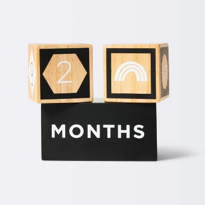 Decorate while displaying your child’s growth with these charming Milestone Blocks from cloud island™. This set of three blocks features wood construction with black, white and natural hues. The square blocks features numbers and the rectangular block features the words “weeks,” “months” and “years.” These blocks are the perfect complement to any shelf or dresser, and help you show off milestones in fun style.